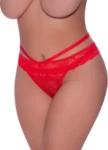 Magic Silk Exposed Cheeky Panty 2X Red Lace Cross-Strap Design