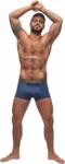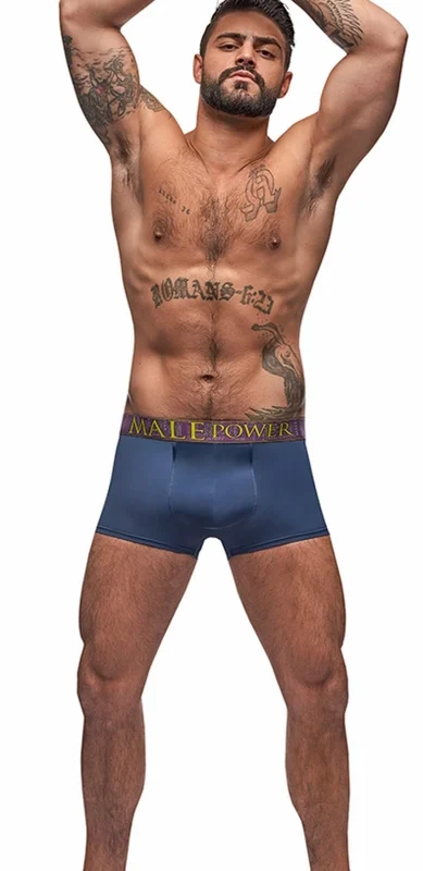 Discover the exceptional comfort and modern style of the Male Power Enhancer Short in size L and the distinctive Antique Blue color. Crafted as part of the Avant-Garde collection, this versatile intimate apparel features a supportive, anatomical pouch designed to provide reliable shaping and a secure fit throughout the day. The silky-smooth material ensures a luxurious feel against the skin, while the innovative branded waistband with a collage-text design adds a unique visual accent.
