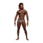 Discover the exceptional design of the Male Power Magnificence Micro V Thong in Jade, available in size S/M. This model features a unique cut-out detail at the waist, complemented by decorative metal grommets that add a modern, sophisticated accent to its overall aesthetic. Engineered for comfort, the slim yet resilient waistband is crafted from plush elastic, ensuring that the underwear stays securely in place throughout wear. The soft, high-quality fabric not only enhances the fit but also ensures long-lasting durability, making it an excellent choice for those seeking both functionality and style.
