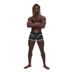Discover the dynamic style and exceptional comfort of the Male Power Sport Mesh Mini Short in size L, presented in a classic black color. This model is engineered for individuals who value both performance and modern aesthetics in their intimate apparel.
