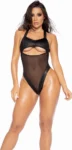 Experience a striking blend of classic design and modern details with this Mapale bodysuit in size S/M. Crafted in sleek black, this model features a dynamic combination of glossy wet look fabric contrasted by delicate sheer mesh inserts, creating a sophisticated visual effect. The unique underbust cut and stylish crossed, open back add a contemporary touch, making this bodysuit perfect for those seeking a bold yet elegant wardrobe addition.