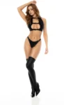 Mapale Two Piece Set L/XL Wet Look Black – Buckle Top & Thong