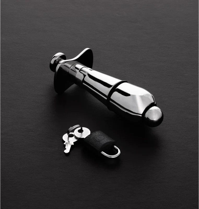 Discover advanced design and precision engineering with the Master Series Stainless Steel Locking Plug Junior. Crafted from high-quality stainless steel, this model is engineered for those who appreciate secure and customizable wear. Its unique expandable system features three hinged sections that open smoothly, allowing for a tailored fit. The integrated locking mechanism ensures stability and peace of mind, making it ideal for extended use or advanced scenarios.