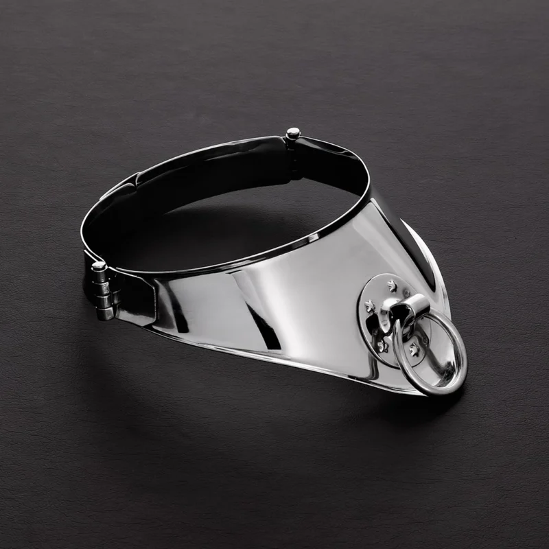 Discover refined style and bold design with the Mystim Cleopatra Stainless Steel Collar featuring a decorative front ring. This premium accessory is crafted for those who appreciate elegant, distinctive metalwork and a timeless, statement-making silhouette.