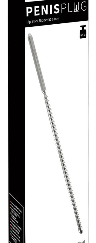 Experience precision craftsmanship with the Mystim Dip Stick Ripped 6mm, a urethral sound designed for advanced users seeking a high-quality, durable accessory. Constructed from premium stainless steel, this model features a seamless, solid structure for optimal safety and hygiene. The beaded shaft is engineered with a series of gentle contours, offering controlled, smooth progression along its 24 cm total length. A rounded tip ensures easy, comfortable insertion, while the handle provides secure control throughout use.