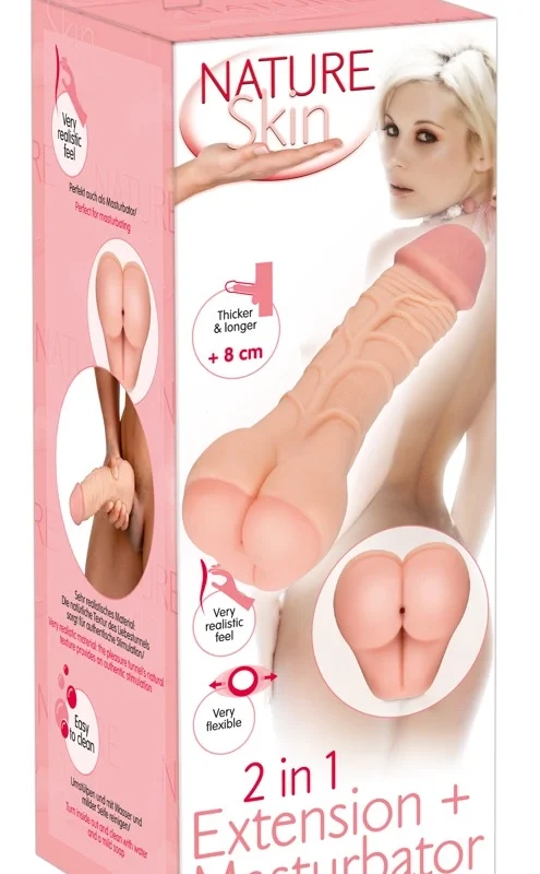 Nature Skin 2in1 Intimate Extension Sleeve is a versatile personal care device, combining an anatomically inspired extension system with a flexible sleeve function. Crafted from premium, skin-like TPE material, this model delivers a comfortable and adaptable experience for those seeking to enhance their intimate moments.