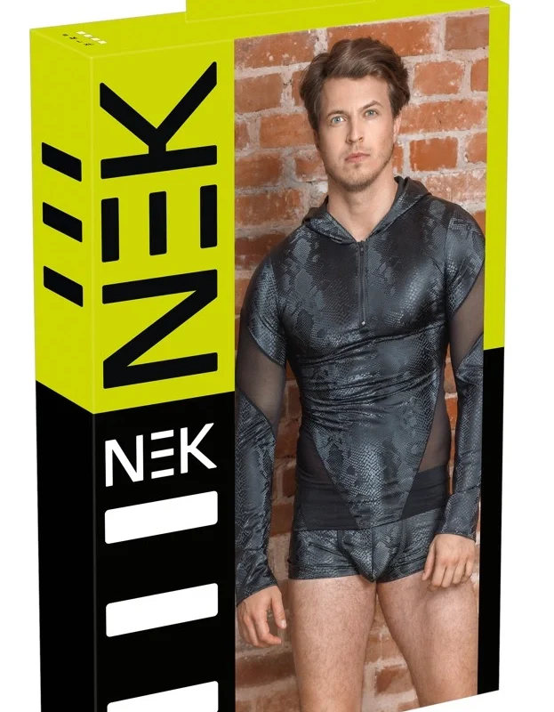 Elevate your style with the NEK Men’s Long Sleeve Hooded Shirt in size M. This modern shirt stands out with its striking snakeskin-inspired design and shimmering matte finish, making it a bold addition to any wardrobe. Crafted from high-quality, stretchable materials, it ensures a perfect, close fit while offering optimal comfort throughout the day.