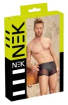 Elevate your wardrobe with these uniquely designed pants by NEK, crafted for those who value both style and comfort. The contemporary matte black finish is paired with transparent mesh panels on the front of the legs, creating an eye-catching contrast that stands out in any setting. The innovative design is completed with a practical zip at the front, providing convenience and a modern touch.