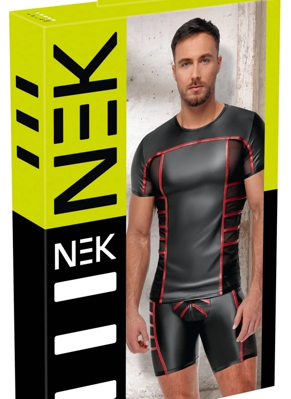 Discover the perfect fusion of contemporary fashion and innovative materials with the NEK Men’s Shirt in size XL. This short-sleeved model features a striking black matte surface accented by bold red stripes, creating an eye-catching and athletic appearance. Designed with precision, this shirt incorporates transparent fine mesh panels on the sides and under the arms, enhancing breathability while adding a sophisticated design element.