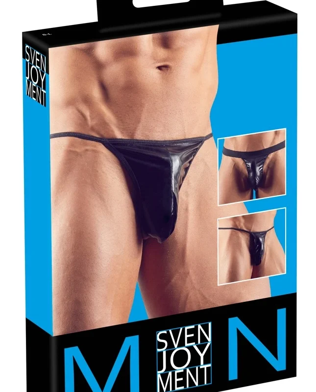 This exclusive set features three distinctive styles in one package: a mini string, a mini G-string, and a jock design, all crafted to provide a modern, athletic appearance. Each piece is made from a high-quality, flexible material with a glossy polyurethane coating, adding a bold and fashionable edge to your underwear collection.