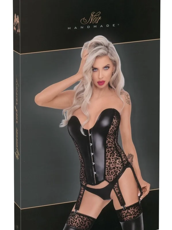 Step into sophisticated elegance with the Noir Handmade Corset XL – Leo Velvet & Wetlook.