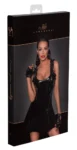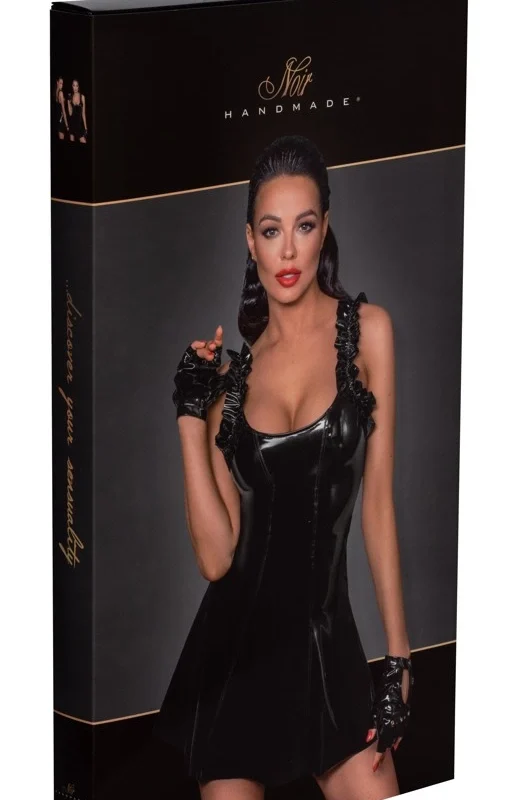 Discover the Elegance of Noir Handmade – Black Vinyl Dress with Ruffle Accents (Size M)