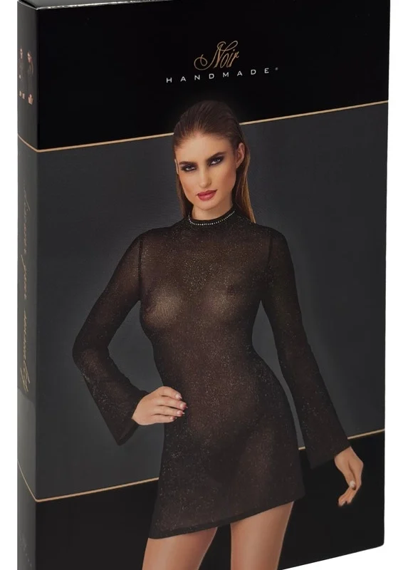 Noir Handmade Mini Dress L Black Sparkling Mesh Trumpet Sleeves