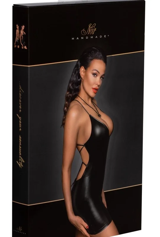 Step into sophisticated style with the Noir Handmade Mini Dress XL, crafted in a striking powerwetlook material that radiates modern elegance. This extra-short dress features a daring deep neckline and an alluring back design with decorative lacing, making it a remarkable choice for those who appreciate both comfort and bold fashion statements.
