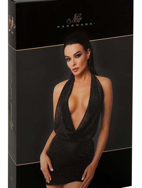 Noir Handmade Orgia Luminara Dress M is a sophisticated halterneck mini dress, crafted to elevate any special occasion. Designed with a distinctive cowl neck and an alluring open back, it features fine decorative straps for both style and a secure, comfortable fit.