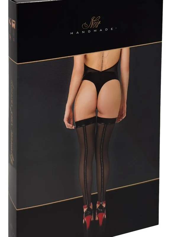 Experience sophisticated style and innovative design with Noir Handmade’s Powerwetlook Knee-highs, size M. These elegant knee-highs are crafted from premium, transparent black polyamide blend for a striking contemporary look. The upper band features Noir’s signature powerwetlook finish, ensuring a secure, non-slip hold throughout wear. Unique sparkling gem seams run along the length, offering versatility to display them at either the front or back for a personalized touch.