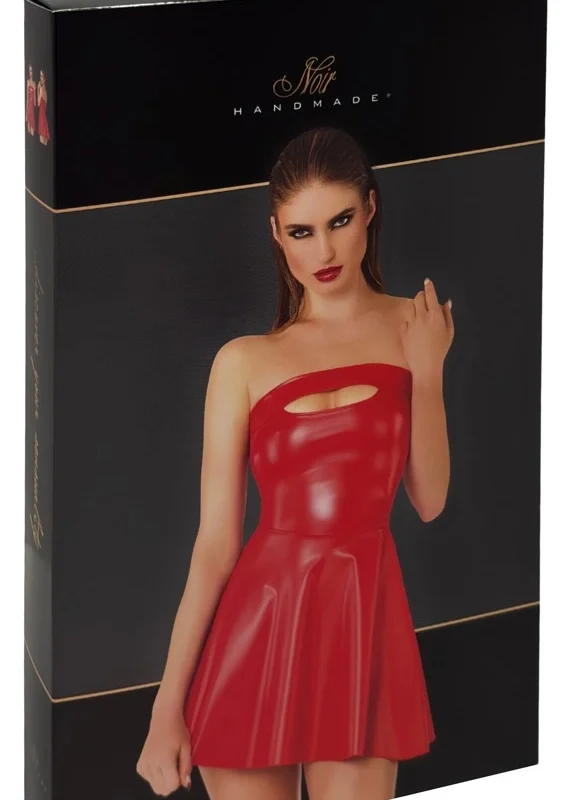 Embrace modern elegance with the Noir Handmade Powerwetlook Strapless Red Dress, Size L.