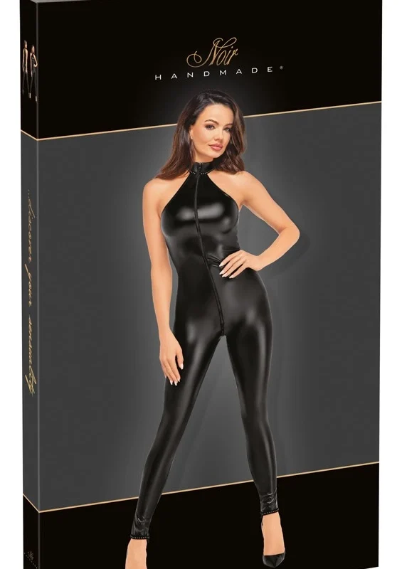 Discover the sophisticated design of the Noir Handmade Rhine Jumpsuit XL – the perfect fusion of innovative style and advanced comfort. Created for those who appreciate unique fashion statements, this model is crafted from high-quality powerwetlook material in classic black, offering a visually captivating surface with a subtle sheen.