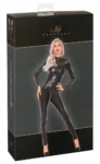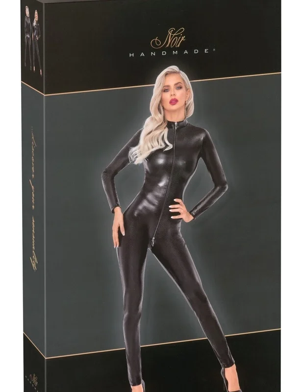 This sophisticated one-piece features a shimmering black finish with a captivating snakeskin pattern, combining contemporary style with comfort. Designed to fit closely to the body, the jumpsuit is crafted from a premium blend of 90% polyester and 10% spandex, enriched with a special polymer coating for a glossy, eye-catching appearance. The fabric’s high elasticity ensures a perfect, second-skin fit while maintaining full freedom of movement.
