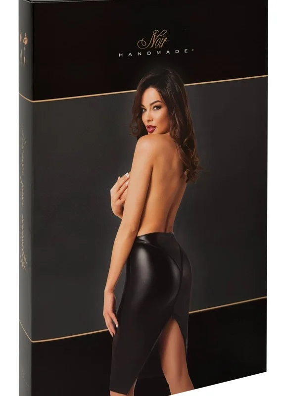 Discover modern sophistication with the Noir Orgia Exclusive Midi Skirt, crafted for those who appreciate bold, contemporary fashion. This knee-length skirt stands out with its sleek black powerwetlook material, offering a captivating, high-shine surface that makes a statement at any occasion.
