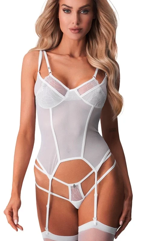 - Transparent white basque with elegant lace detailing