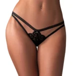 Elevate your lingerie collection with the Obsessive Blomentis Women’s Lace String in classic black, designed for those who appreciate a blend of subtle elegance and modern aesthetics. This model combines premium materials with a unique double waistband and refined lace motifs, ensuring both comfort and contemporary appeal.