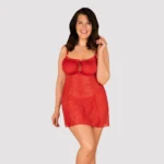Discover the elegance and confidence that comes with the Obsessive Blossmina Chemise in a striking red shade, designed specifically for plus-size figures (4XL/5XL). Crafted to enhance natural curves, this sophisticated model features a delicate corset-style lace-up back and semi-transparent lace accents, giving it a refined yet captivating appearance. The adjustable shoulder straps ensure a customized fit, while the elasticated bust binding provides gentle support and shape. The set includes a classic-cut matching thong for a coordinated look. Made from a soft, stretchable blend of 90% polyamide and 10% spandex, this chemise offers comfort and flexibility for all-night wear.