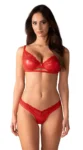 Discover the sophistication of the Obsessive Cupide Desir 3-piece lingerie set, crafted for those who appreciate refined style and comfort. This exquisite collection features a wireless bra, a suspender belt, and a matching thong, all beautifully made from delicate, semi-transparent red lace. The intricate gold-toned details and a subtle decorative accent between the bra cups add a touch of uniqueness, while the soft, stretchy materials ensure a comfortable, tailored fit for every silhouette.
