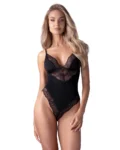 Featuring adjustable straps, the bodysuit allows for personalized fitting, while the wireless cups provide natural shaping and support. A discreet decorative element is placed between the cups, enhancing the design’s subtle charm. For convenience, the bodysuit includes a practical hook closure at the lower section, making it easy to put on and take off.