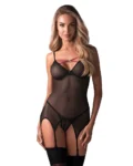 - Set includes: Basque (with suspenders) and thong