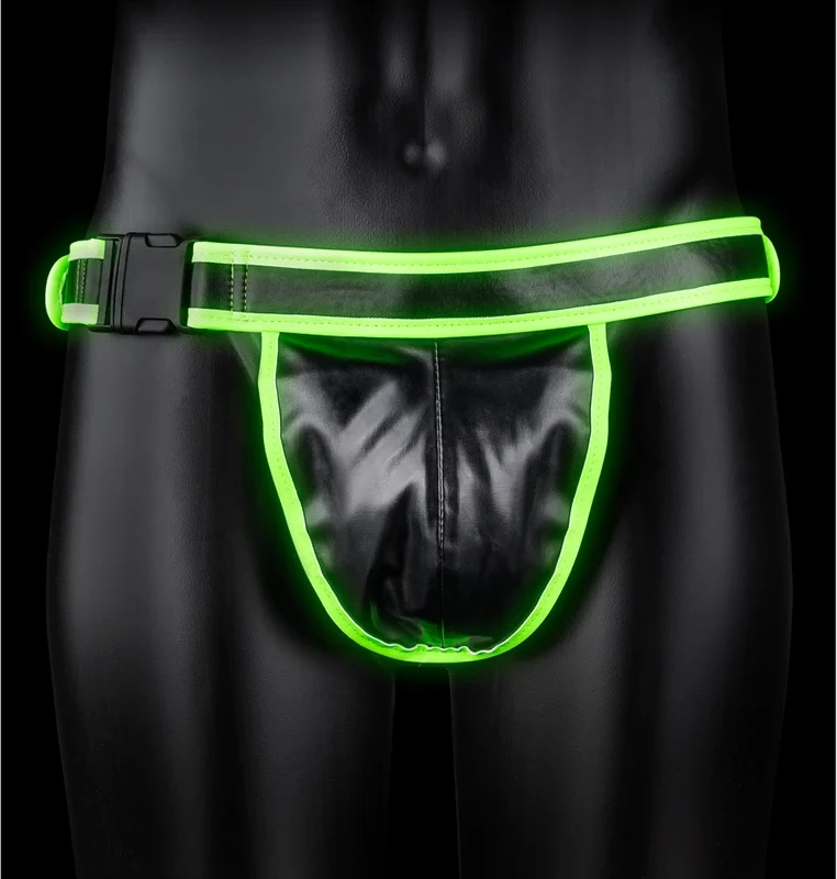 Discover bold style and innovative design with the Ouch! Jockstrap with Buckle – Glow in the Dark, size S/M.