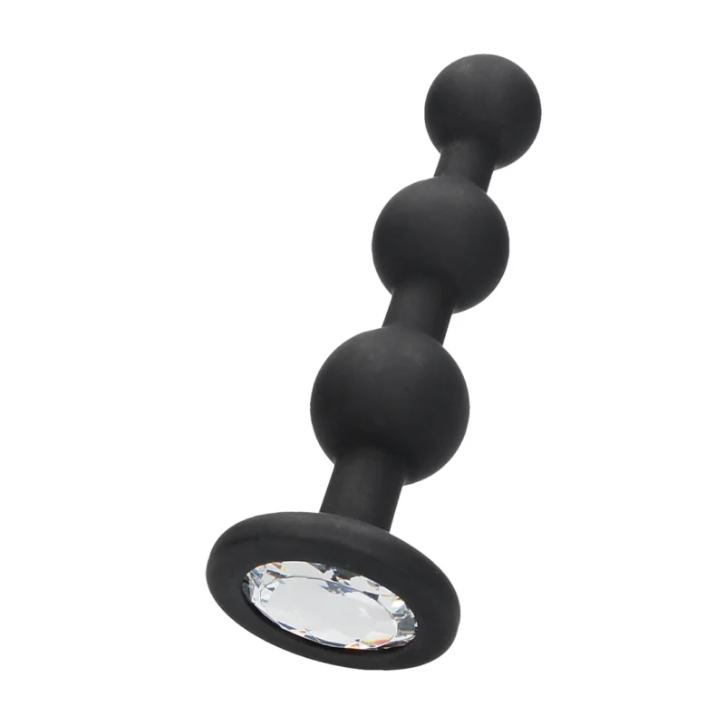 Ouch! Silicone Beaded Anal Plug with Diamond-Style Crystal Base Black