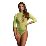 Discover the allure of the Passion Short Sleeve Fishnet Bodysuit in a vibrant green shade. This model combines modern style with practical design, making it a standout addition to any personal wardrobe. The bodysuit features a round neckline with a striking contrast V-shaped trim, ensuring a visually appealing look that accentuates the silhouette. Crafted from high-quality, stretchable fishnet material, it comfortably fits a wide range of body types (S-XL), offering flexibility and ease of movement.