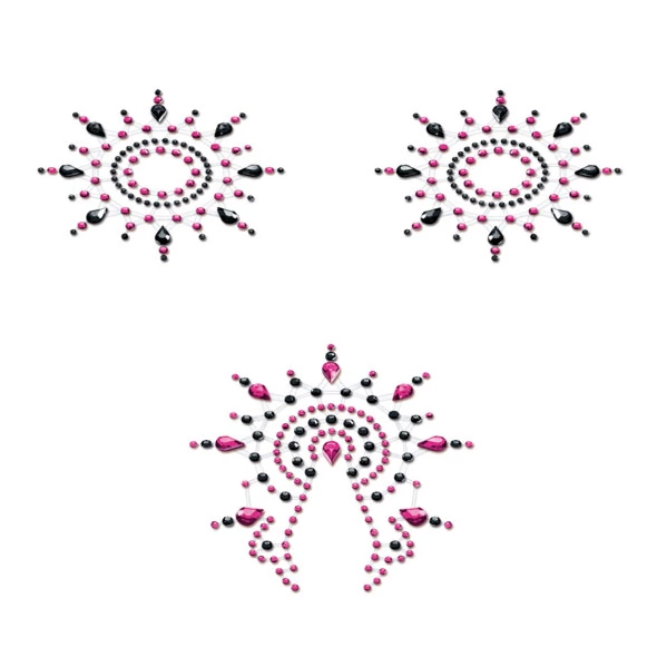 Elevate your style with the Petits Joujoux Gloria Body Jewelry Set in Black & Pink. This luxurious accessory is crafted with exceptional attention to detail, featuring over 300 sparkling crystals that create a dazzling effect on the skin. Designed for decorative body adornment, this set adds a touch of glamour for special occasions, fashion shoots, or as a chic accent beneath elegant garments.