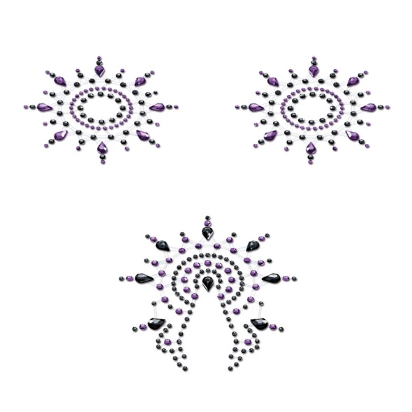 Discover refined elegance with the Petits Joujoux Gloria Body Jewelry Set in Black & Purple. This exclusive set features over 300 sparkling decorative crystals, meticulously designed to accentuate the body’s natural contours. The striking black and purple color combination adds a touch of sophistication and glamour, making it an excellent accessory under special lingerie or as a statement piece for unique occasions.