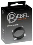 Engineered from high-quality, velvety soft silicone, this robust model offers a flexible fit that adapts seamlessly to various anatomical shapes. The elegant black surface is accented with durable metal studs, adding a unique visual dimension while maintaining a subtle and modern look. This adjustable ring is designed to be easily placed and removed, ensuring practical everyday use and effortless handling.