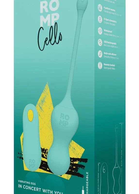 ROMP Cello Silicone Training Vibro-Balls with Remote Control are designed to offer advanced support for pelvic floor muscle exercises. These innovative vibro-balls combine modern technology with an ergonomic design, allowing users to conveniently enhance their training routine. Featuring 10 distinct vibration settings, the ROMP Cello delivers versatile options that can be easily adjusted either through the intuitive button on the flexible retrieval strap or using the included compact remote control.