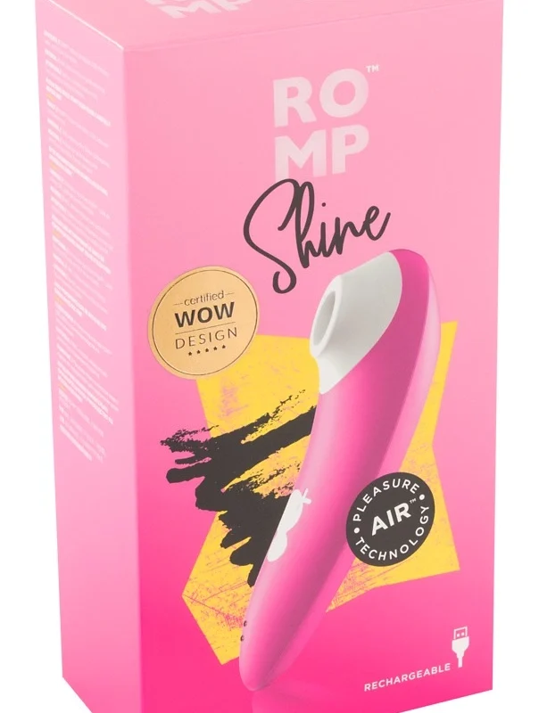 Discover the ROMP Shine Intimate Air Pulse Device – a modern solution designed for comfort and precision. This advanced model utilizes innovative Pleasure Air™ technology, delivering pulsating air waves for contact-free stimulation. The ergonomic, lightweight shape ensures easy handling and an optimal fit for various anatomical needs.