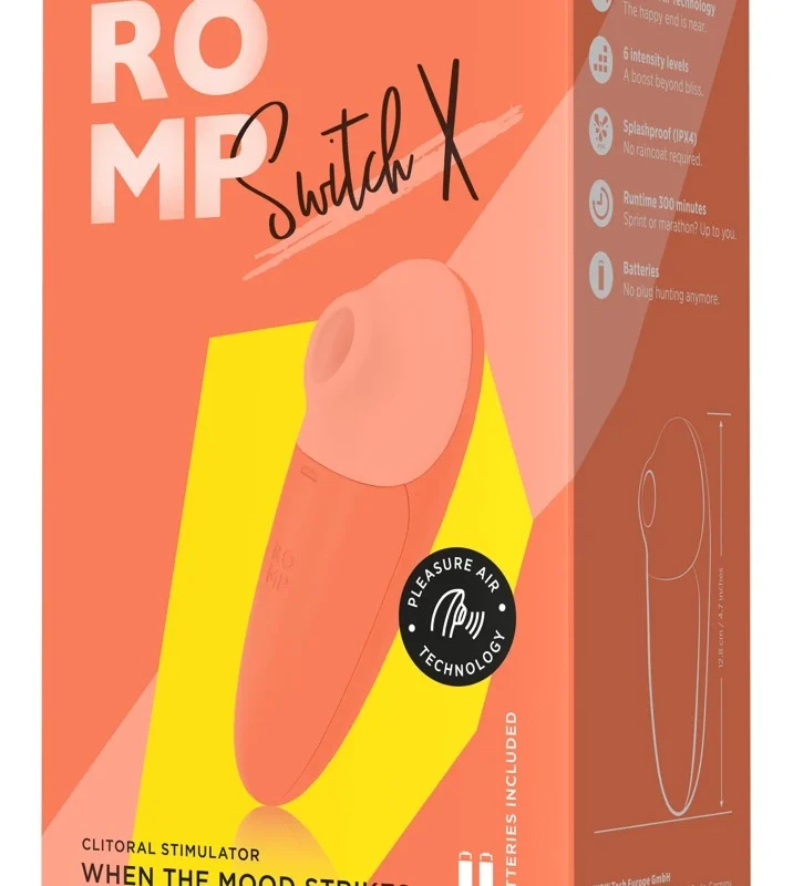 Discover the next generation of innovative intimate care with the ROMP Switch X Air Pulse System. Designed for those seeking a user-friendly, compact, and highly effective solution, this model utilizes advanced Pleasure Air Technology to deliver pulsating air currents with precise, contact-free stimulation.