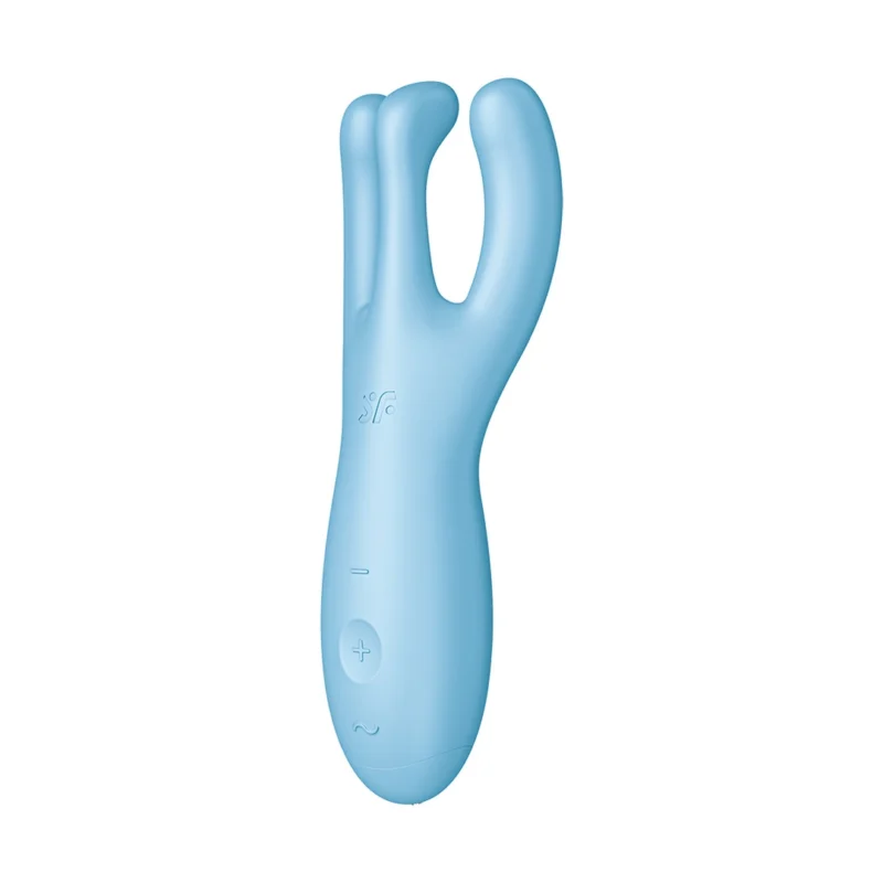 Discover advanced technology for personal well-being with the Satisfyer Threesome 4+ Lay-On Intimate Device, featuring app connectivity and a unique ergonomic design.