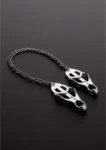 Discover advanced sensation and secure hold with the Sinner Gear Clover Adjustable Nipple Clamp with Sturdy Chain. Engineered for precision and comfort, this model features a robust metallic construction and a distinctive clover-leaf clamp design, ensuring a stable and customizable fit. The clamps are linked by a durable metal chain, allowing for creative use and easy integration into a wide range of intimate setups.