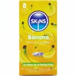 Choose Skins Banana Premium Condoms 8-Pack for protection that combines safety, comfort, and a fresh banana fragrance. Ideal for those seeking a high-quality, reliable, and pleasantly scented product.