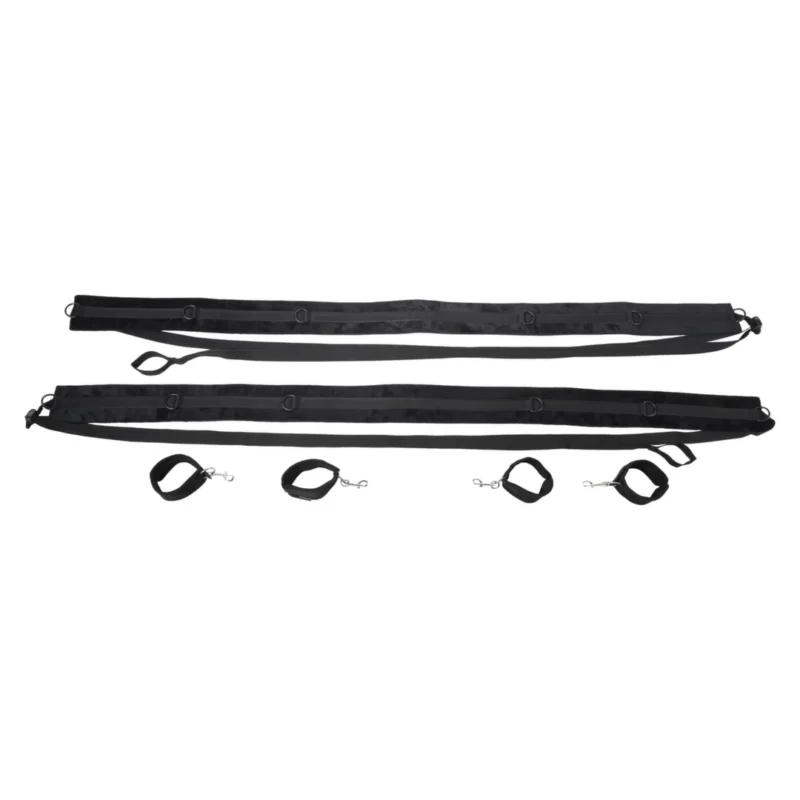 Designed for both convenience and adaptability, the system features four adjustable cuffs crafted from high-quality materials for optimal comfort and security. Each cuff attaches via robust D-ring connectors, enabling quick adjustment and reliable positioning. The padded webbing stretches up to 5 feet (152 cm), ensuring a secure yet gentle fit. The lightweight construction and compact design make this restraint system easy to transport and discreet to store, making it ideal for travel or spontaneous use.