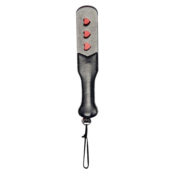 Experience a new level of sophistication in your collection with the Sportsheets S&M Heart Paddle. This thoughtfully designed accessory stands out thanks to its split surface and distinctive heart-shaped pattern, making it a stylish and functional addition. Crafted from high-quality vegan leather, the paddle ensures durability and comfort, while its dual-layered build intensifies the sound for a more pronounced audible effect with minimal effort. The rigid handle is equipped with a secure wrist loop, offering enhanced control and confidence during use.