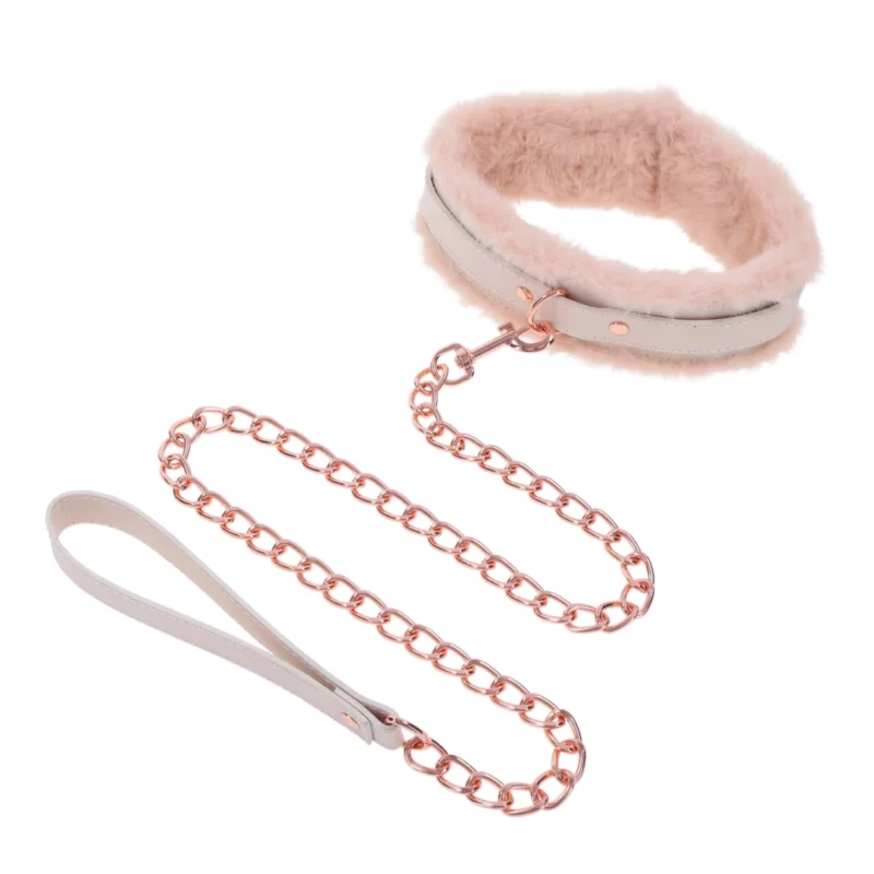 Elevate your style and enjoy elegant sophistication with the Sportsheets S&M Peaches ‘n CreaMe Adjustable Fur Collar & Leash Set in a unique peach hue.
