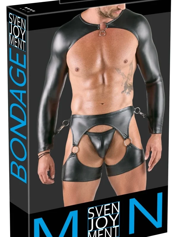 This exclusive set by Svenjoyment combines striking aesthetics with premium comfort, offering a bolero, hip harness, and jock crafted from high-quality matte black fabric. The soft, stretchy material adapts perfectly to the body, ensuring a secure yet comfortable fit for a wide range of body types.