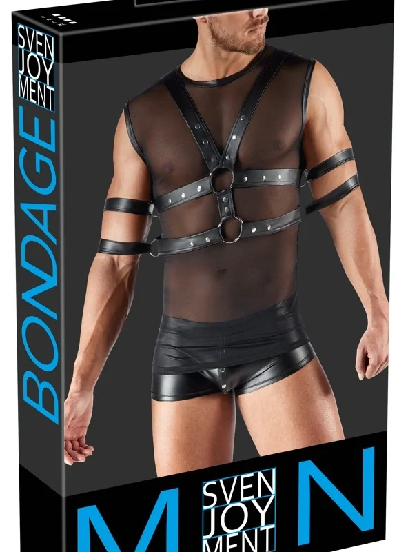 Discover the perfect blend of style and innovation with the Svenjoyment Bondage Men’s Sleeveless Powernet Shirt Set in size L and classic black color.