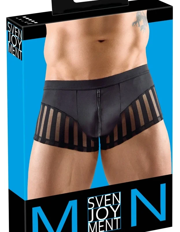 - Model: Men’s Black Microfibre Pants with Transparent Stripes