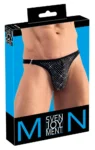 Discover a bold and stylish update to your wardrobe with the Svenjoyment Men’s Black String featuring a dazzling array of colorful rhinestones at the front. Designed for those who appreciate both comfort and standout design, this model combines an elegant black base with multiple sparkling accents, creating a unique and fashionable look.