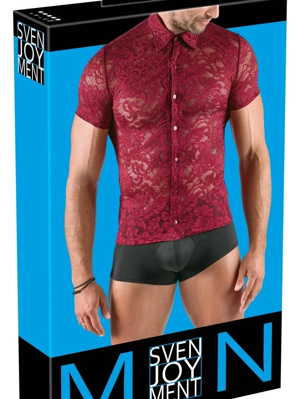 Elevate your wardrobe with the Svenjoyment Men’s Lace Shirt in 2XL, a sophisticated garment crafted for those who appreciate distinctive style and superior comfort. This unique model showcases a refined dark red floral lace design, delivering an elegant and contemporary look that stands out in any setting.
